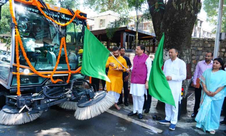 मुख्यमंत्री धामी ने वैक्यूम बेस्ड रोड स्वीपिंग मशीन को दिखाई हरी झंडी