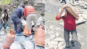 राशन का संकट: खबरों के मुताबिक, कई गांवों में राशन का स्टॉक खत्म हो रहा है, जिससे लोगों के सामने खाने-पीने का संकट पैदा हो गया है। कुछ लोग पीठ पर राशन की बोरियां और सिलेंडर लादकर कठिन और खतरनाक रास्तों से गांवों तक पहुंचा रहे हैं।