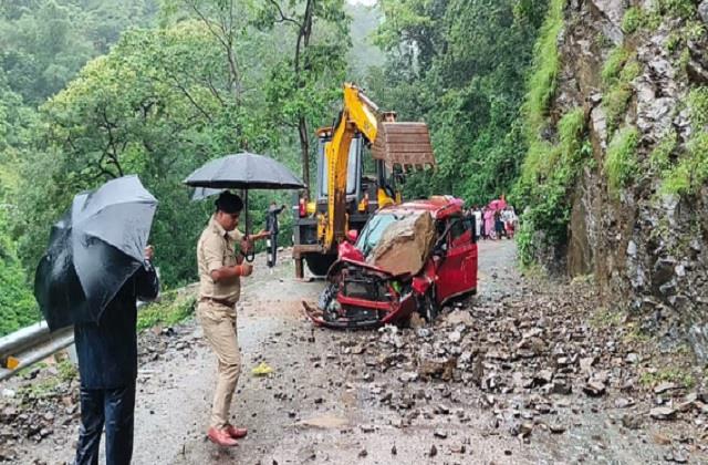 पुलिस ने बताया कि यह घटना बारिश के कारण हुई है। इसके चलते नीलकंठ मार्ग पर एक कार पर पत्थर गिरा हैं। कार में सवार यात्रियों के सुरक्षित होने की सूचना मिली है। इसके अलावा प्रशासन के द्वारा मार्ग को खुलवाने का प्रयास किया जा रहा है।