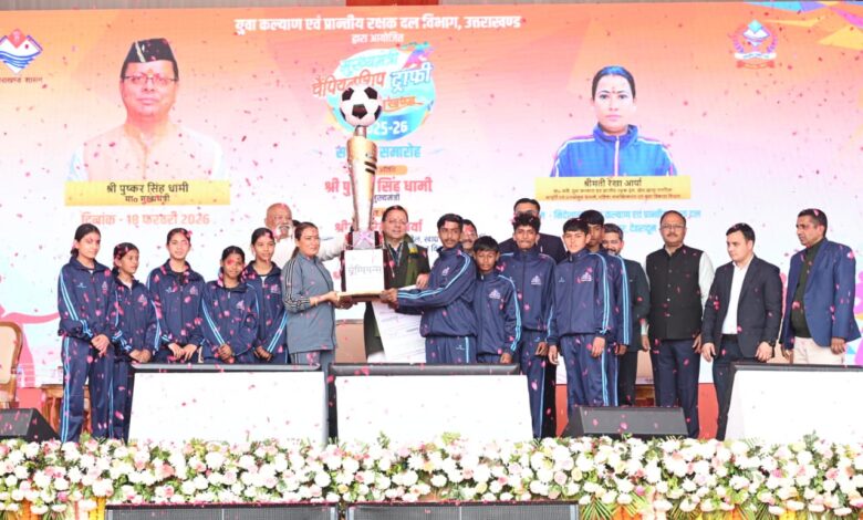 मुख्यमंत्री पुष्कर सिंह धामी ने बुधवार को ननूरखेड़ा, देहरादून में मुख्यमंत्री चैम्पियनशिप ट्रॉफी 2025-26 के समापन समारोह में प्रतिभाग किया। इस अवसर पर मुख्यमंत्री ने देहरादून जनपद को विजेता ट्रॉफी एवं 05 लाख रुपये का चेक प्रदान किया।