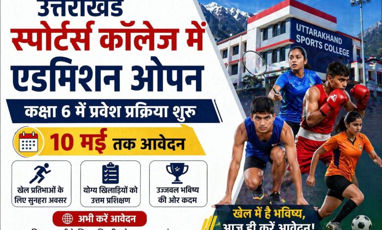उत्तराखंड के स्पोर्ट्स कॉलेजों में कक्षा 6 में प्रवेश हेतु पंजीकरण प्रक्रिया प्रारंभ कर दी गई है। इससे राज्य के प्रतिभाशाली बालक एवं बालिकाओं को खेल क्षेत्र में अपना भविष्य संवारने का सुनहरा अवसर मिलेगा। इच्छुक अभ्यर्थी निर्धारित तिथि तक आवेदन कर सकते हैं।