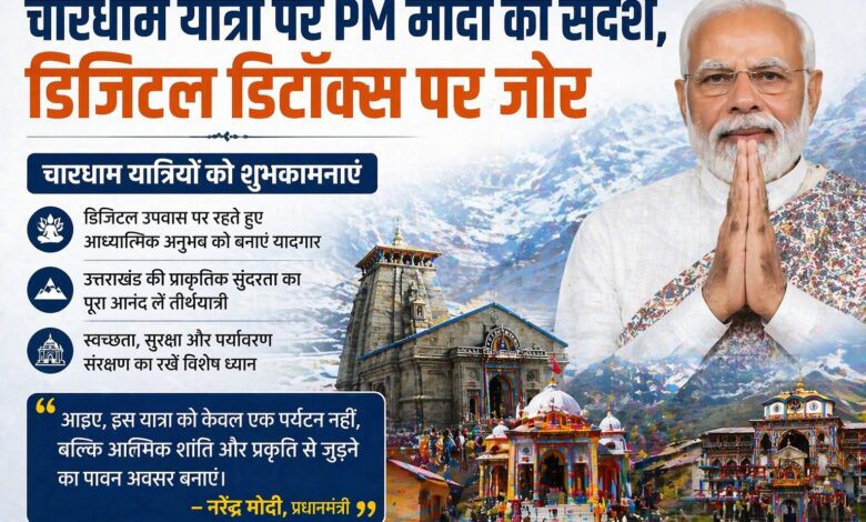 पिछले कुछ वर्षों से उत्तराखंड में विकास का जो महायज्ञ चल रहा है, उसने चारधाम यात्रा को पहले से अधिक सुगम, सुरक्षित और दिव्य बनाया है। जिससे श्रद्धालुओं, संतजनों और पर्यटकों को सुविधा हो रही है। प्रधानमंत्री ने उत्तराखंड आने वाले अतिथियों से अपील करते हुए कहा कि वे अपनी यात्रा के दौरान डिजिटल उपवास रखते हुए, उत्तराखंड की प्राकृतिक सुंदरता को जीने का प्रयास भी करें। इससे उन्हें एक अलग संतुष्टि भी मिलेगी।पांच संकल्प